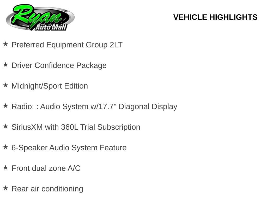Buy with confidence at Ryan Auto Mall. With over 22,500 reviews, 9 GM Mark of Excellence awards, and 65 MN DealerRater Dealer of the Year honors, our reputation is proven. Pricing includes all unconditional manufacturer rebates; tax, title, license, and a $350 doc fee are additional. Every vehicle is pre-fitted with PULSE, our rear-end collision deterrent system, available for just $399. Visit us at 911 E Hwy 55 in Buffalo or call 612-326-6209 to schedule your test drive and experience the Ryan difference. Price includes the following offers that everybody qualifies for:$1000 - Chevrolet Bonus Cash. Exp. 03/02/2026