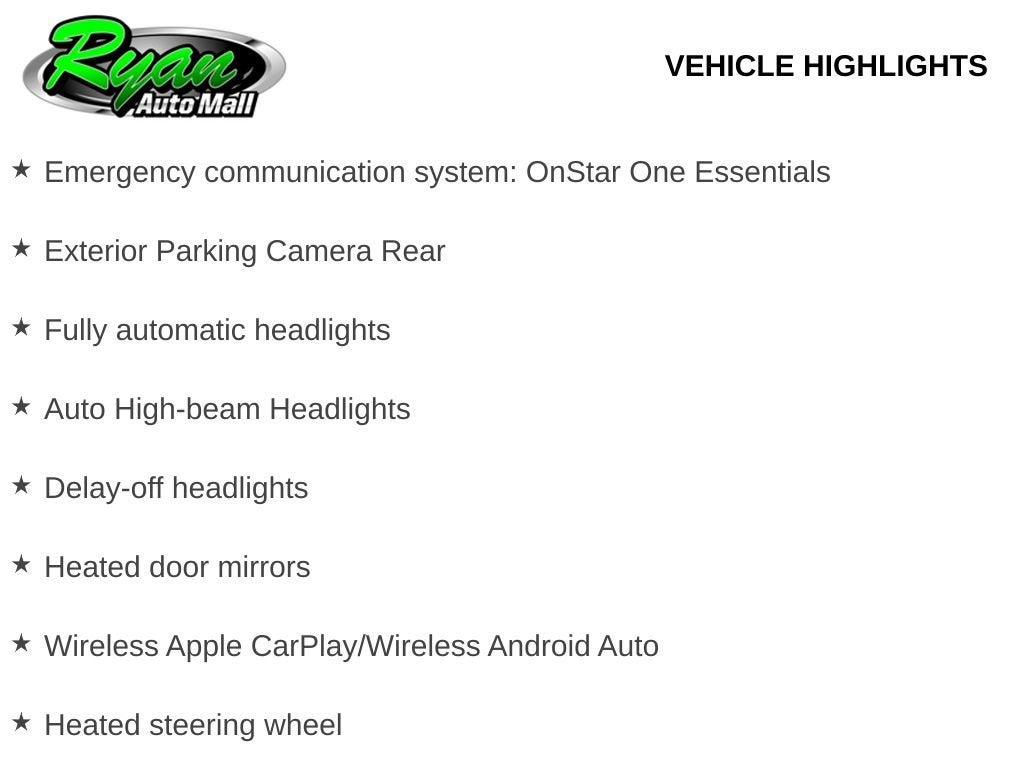 Chevrolet Safety Assist comes standard, giving you added peace of mind with advanced driver-assist features such as automatic emergency braking, forward collision alert, lane keep assist with lane departure warning, following distance indicator, and IntelliBeam automatic high beams. Convenience features like keyless entry, push-button start, remote start capability, and climate control further enhance your everyday driving experience.