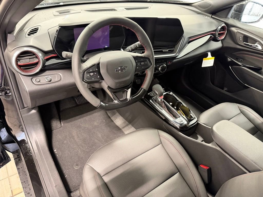 Inside, the Trax 2RS offers a driver-focused cabin featuring a large center touchscreen with wireless Apple CarPlay and Android Auto compatibility, Bluetooth® connectivity, and an integrated digital driver display that keeps key information front and center. Premium cloth and leatherette seating surfaces, a flat-bottom sport steering wheel, and RS interior accents create a modern, upscale feel, while spacious rear seating and a versatile cargo area provide flexibility for groceries, gear, or road trips.
