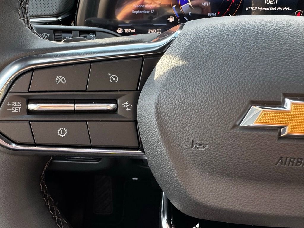 Safety and driver assistance features are extensive, with standard Chevrolet Safety Assist including Forward Collision Alert, Lane Keep Assist with Lane Departure Warning, Front Pedestrian Braking, Following Distance Indicator, Automatic Emergency Braking, and IntelliBeam automatic high beams. Additional advanced features on this model include Blind Zone Steering Assist with Trailering, Rear Cross Traffic Alert, Rear Park Assist, and Hill Descent Control. The Advanced Security Package provides added peace of mind with interior movement and vehicle incline sensors, glass break detection, and enhanced door and liftgate protection.