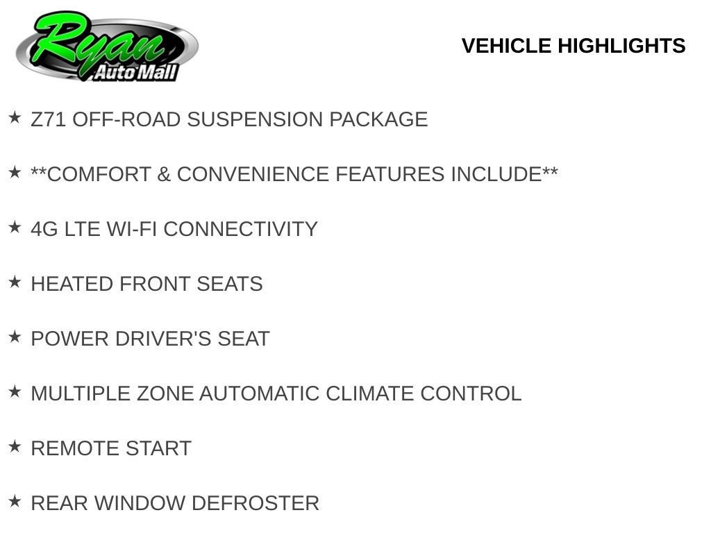 This Silverado is enhanced with desirable package upgrades, including the All Star Edition Package and the Z71 Off-Road Suspension Package. These upgrades add off-road-tuned suspension components, skid plates, hill descent control, and an automatic locking rear differential, delivering added confidence whether you’re navigating rough terrain or hauling through tough conditions.