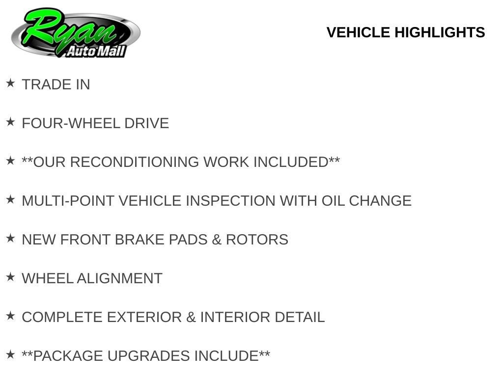 Every effort has been made to offer current and accurate information to our users, but errors can occur. Ryan Auto Mall (Ryan Chevrolet Buffalo) assumes no liability or responsibility for any errors or omissions in the content contained on this website. Prices are subject to change without notice.