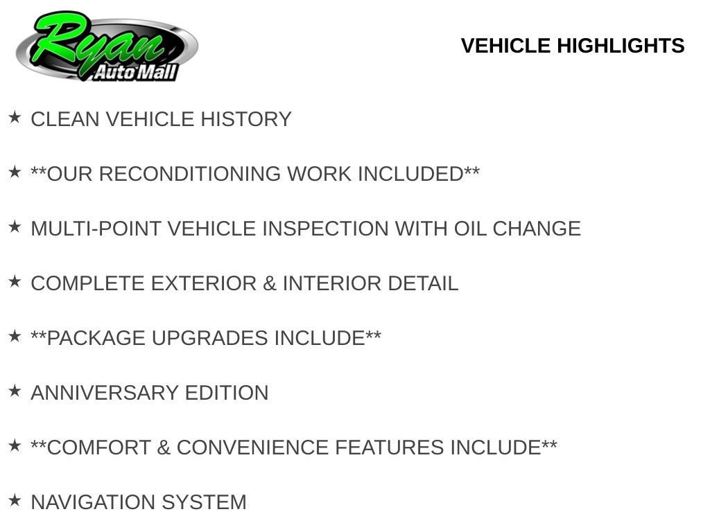 The Anniversary Edition package adds distinct flair and exclusivity, enhancing both aesthetics and value. Comfort and convenience features include a navigation system, Bose premium audio with crisp sound, 4G LTE Wi Fi, wireless device charging, power-adjustable heated and ventilated bucket seats with memory, power tilt and telescoping steering column, universal garage door controller, remote start, and rear window defroster—ensuring every drive around Buffalo is as effortless as it is thrilling.