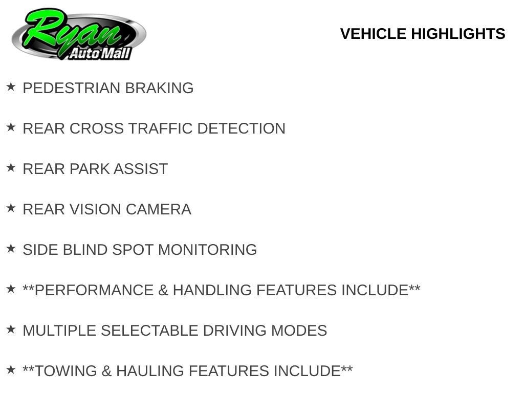 Safety and driver assistance features include automatic emergency braking, forward collision alert, lane keep assist, lane departure warning, lane change alert, blind spot monitoring, and rear cross traffic detection. Automatic high beam headlamps, rear park assist, and a rear vision camera help enhance visibility and confidence on every drive.