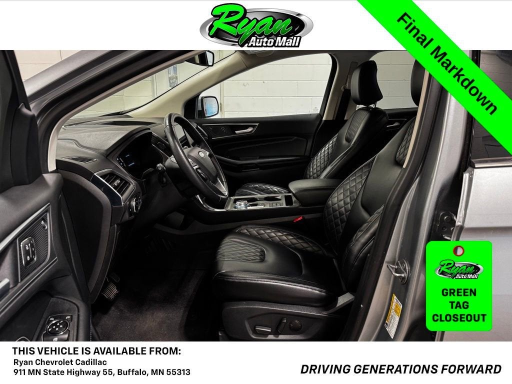 At Ryan Chevrolet in Buffalo, this vehicle has undergone a thorough multi-point inspection with an oil change, followed by a complete exterior and interior detail as part of our professional reconditioning process. The result is a 2024 Ford Edge Titanium that looks sharp, drives beautifully, and is ready for many more miles ahead. Contact us for availability and a test drive today. Buy with confidence: Backed by the Ryan Auto Mall group, we boast over 22,000 online reviews and are proud recipients of 9 GM Mark of Excellence awards and 65 MN DealerRater Dealer of the Year awards. Warranty included. Tax, title, license fees, and a $350 documentation fee are not included. Stay safe with PULSE, our optional rear-end collision deterrent system, for just $399. Experience peace of mind with this advanced safety feature which is pre-fitted to all our vehicles.Visit us at 911 E Highway 55, Buffalo, MN 55313, or call 612-326-6209 to schedule a test drive and discover the Ryan Auto Mall difference!