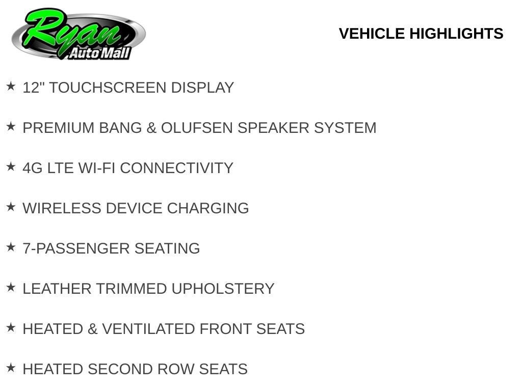 Technology is intuitive and robust, featuring a 12-inch touchscreen display with built-in navigation, wireless device charging, Apple CarPlay and Android Auto capability, 4G LTE Wi-Fi connection, and a premium Bang & Olufsen audio system for immersive sound. Remote start, rear window defroster, and a power liftgate make daily use effortless whether parked in downtown Buffalo or maneuvering in tight driveways.