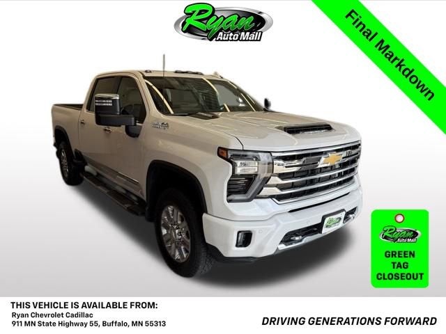 Take on any job with confidence and refinement in this 2025 Chevrolet Silverado 3500HD High Country, available now at Ryan Chevrolet in Buffalo, Minnesota. This one-owner truck was recently taken in on trade and features a clean vehicle history along with four-wheel drive capability, making it ideal for drivers throughout Buffalo, Wright County, and the Twin Cities area who demand heavy-duty performance with premium comfort.Powered by a robust heavy-duty powertrain, the Silverado 3500HD delivers exceptional towing and hauling capability. Equipped with a 3.73 rear axle ratio, trailer brake controller, hitch guidance system, 5th wheel and gooseneck towing prep, and heavy-duty trailering equipment, this truck is built for serious work. The Z71 Off-Road Suspension Package, skid plates, hill descent control, and snow plow prep package further enhance capability in demanding conditions, while a power tailgate, LED cargo bed lighting, and spray-on bedliner add everyday functionality.Inside, the High Country trim offers a refined cabin with premium leather upholstery, heated and ventilated front seats, heated rear seats, and a heated steering wheel. Memory seating, a power sunroof, power sliding rear window, and dual-zone automatic climate control provide exceptional comfort. Technology is front and center with a large 13.4-inch touchscreen display, wireless Apple CarPlay and Android Auto, wireless charging, 4G LTE Wi-Fi capability, and a premium Bose sound system.Advanced safety and driver assistance features include adaptive cruise control, automatic emergency braking, forward collision alert, lane departure warning, blind spot monitoring, rear cross traffic detection, surround vision with trailer camera provisions, head-up display, and a rear camera mirror, helping you stay confident whether towing or commuting.Our reconditioning work included a complete multi-point inspection with oil change along with a full interior and exterior detail to ensure this Silverado meets the high standards expected at Ryan Chevrolet in Buffalo, MN. A free CARFAX Vehicle History Report is available on our website so you can review its history with confidence.If you are searching for a luxury heavy-duty truck with advanced technology and unmatched capability near Buffalo or the surrounding Minnesota communities, this 2025 Chevrolet Silverado 3500HD High Country is an outstanding choice. Contact us for availability and a test drive today. Buy with confidence at Ryan Auto Mall, where our reputation is built on trust and results. Every pre-owned vehicle undergoes a comprehensive multi-point inspection and professional reconditioning to ensure quality, reliability, and presentation you can depend on. This vehicle includes warranty coverage, either remaining factory warranty or a limited powertrain warranty, for added peace of mind. Extended vehicle service contracts are also available for purchase on any vehicle we offer. Every vehicle is pre-fitted with PULSE, our rear-end collision deterrent system, available for just $399. With over 22,750 customer reviews, 9 GM Mark of Excellence awards, and 65 Minnesota DealerRater Dealer of the Year honors, you can be confident you are choosing a proven leader. Pricing excludes tax, title, license, and a $350 documentation fee. Visit Ryan Auto Mall at 911 E Hwy 55 in Buffalo or call 612-326-6209 to schedule your test drive and experience the Ryan difference.
