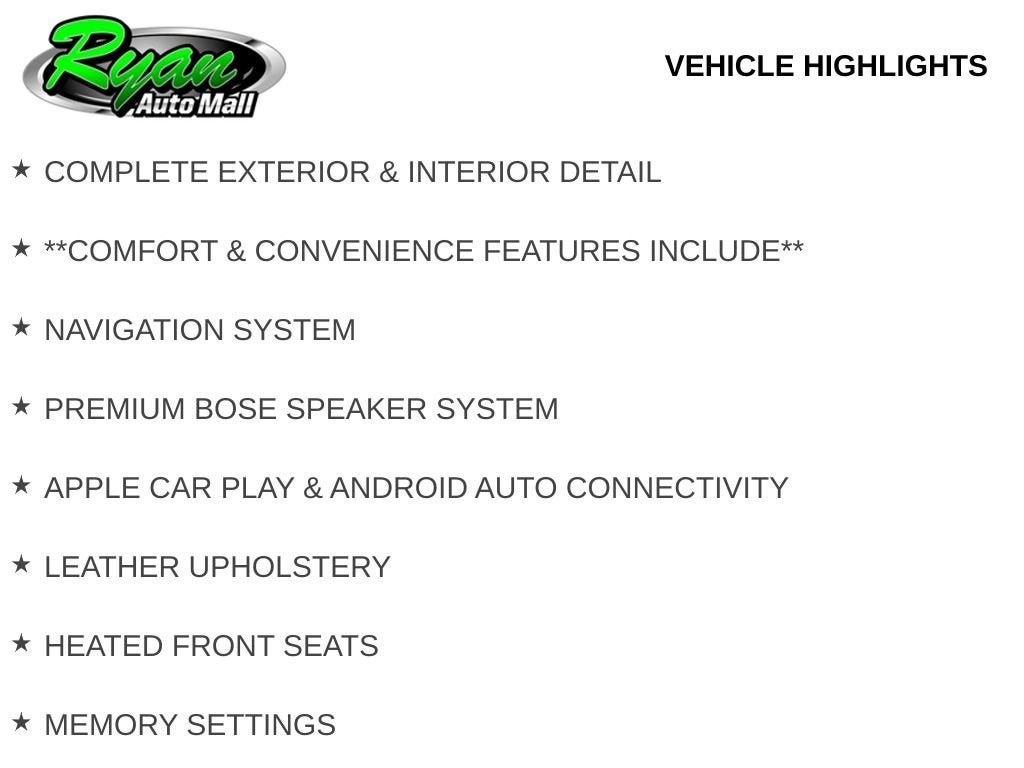 This one-owner trade-in features a clean vehicle history and has completed our comprehensive reconditioning process, including a multi-point vehicle inspection with oil change, tire rotation and balance, wheel alignment, and a complete exterior and interior detail to ensure it is ready for the road. Inside, you’ll enjoy leather-trimmed seating with heated front seats, memory settings, power-adjustable driver and front passenger seats, comfortable bucket seating, a power liftgate, and multiple-zone automatic climate control for personalized comfort across all rows. A power sunroof adds an open, airy feel to the cabin, while a universal garage door controller and rear window defroster add everyday convenience.